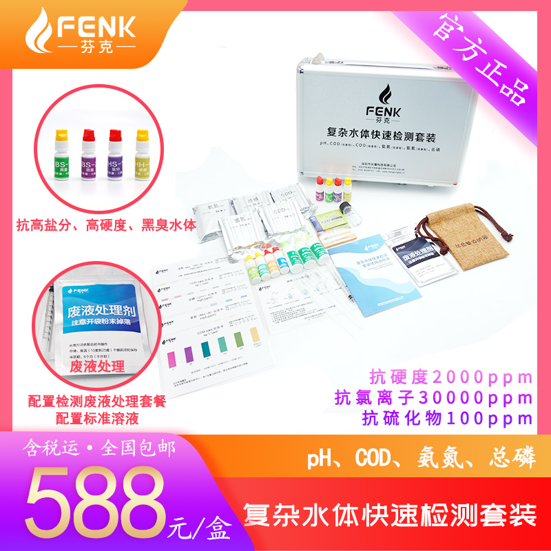 复杂水体快速检测套装 高效助力河道/入海口等污染排查 适合高硬度、高盐分、黑臭水体 抗硬度2000ppm、抗氯离子30000ppm、抗硫化物100ppm